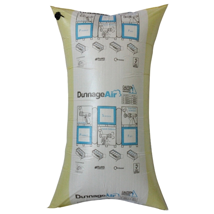 All the materials of dunnage air bag we produce are environmentally friendly and recyclable, meeting the requirements of ROHS standards through SGS testing. We mainly produce two kinds of standard dunnage air bags, PP woven dunnage bags, and PP woven bag composite with kraft paper, both equipped with rapid inflation valve.Storm-type rotary quick inflation system Effectively enhances inflation Make reuse easier .