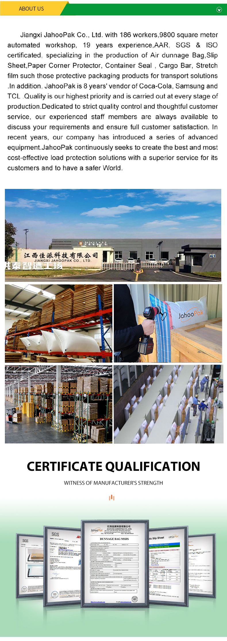 stability and protection. When shipping goods, especially in large containers, the risk of movement and impact can lead to costly damages. Air dunnage bags act as a barrier, filling voids and preventing cargo from shifting, thus minimizing the risk of breakage and ensuring that your products arrive at their destination in pristine condition.