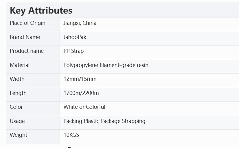JahooPak PP strapping is primarily made from polypropylene filament-grade resin.