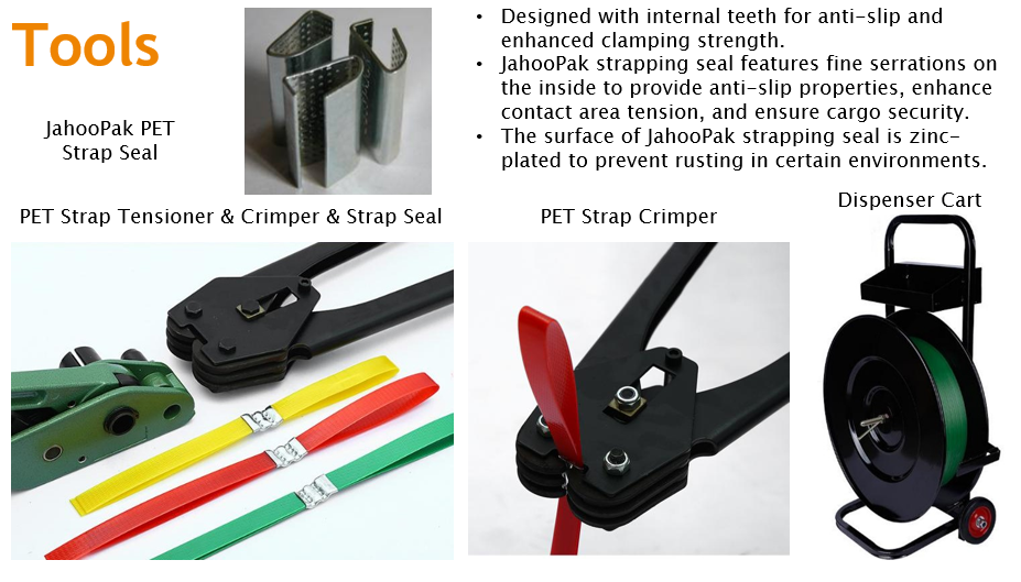 - JahooPak PET Strapping appearance is transparent (or opaque with added tackifier), and the surface is smooth or have embossed patterns.